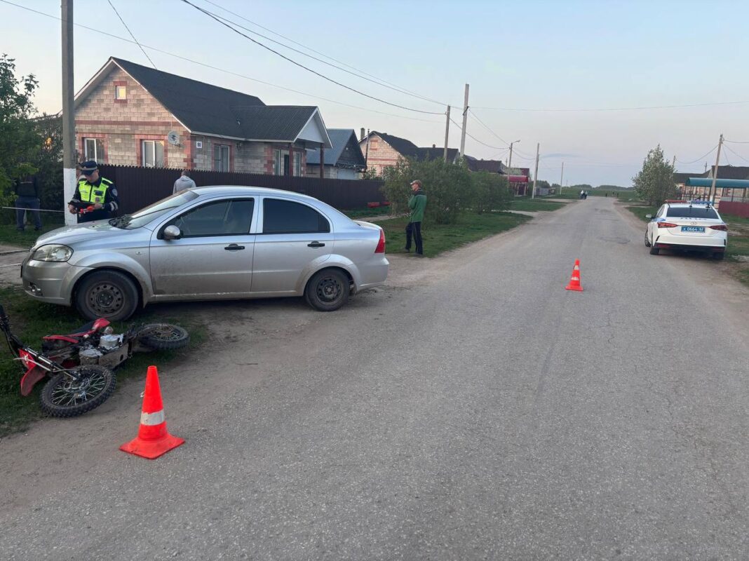 Авария случилась в четверг, 24 апреля, в 18:23 в селе Торбаево. Мальчик, управлявший питбайком «Мотоленд», столкнулся с автомобилем «Шевроле Авео» под управлением 39-летнего местного жителя.
