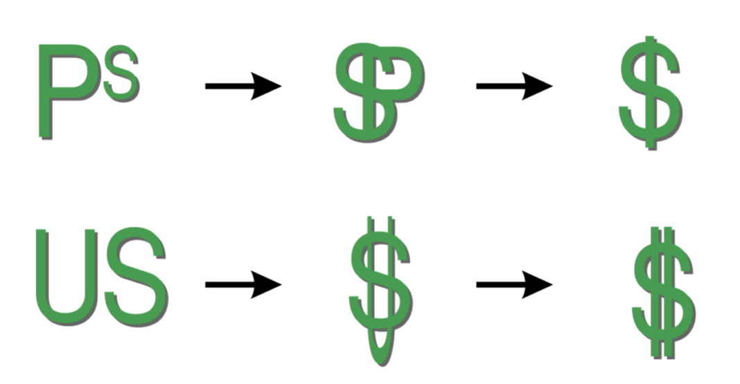 Но если в случае с наименованием мнения историков сошлись, то знаменитый знак $ вызывает немало споров. Причем тут доллар и английская S? Версий несколько, от весьма логичных до самых невероятных. Например, романтики даже высказывают предположения, что в знаке переплетены инициалы итальянского аристократа и его возлюбленной. Но наибольшее распространение получили два варианта. Один из них: знак образован двумя наложенными друг на друга буквами US, означающими «Соединенные Штаты». Вторая версия, получившая больше всего одобрения, говорит об испанском наследии. Конкистадоры везли песо, множественное число их денежных знаков записывалось как «Ps». Со временем две буквы слились, от одной из них осталась только палочка, а знак трансформировался в привычный всему миру $.