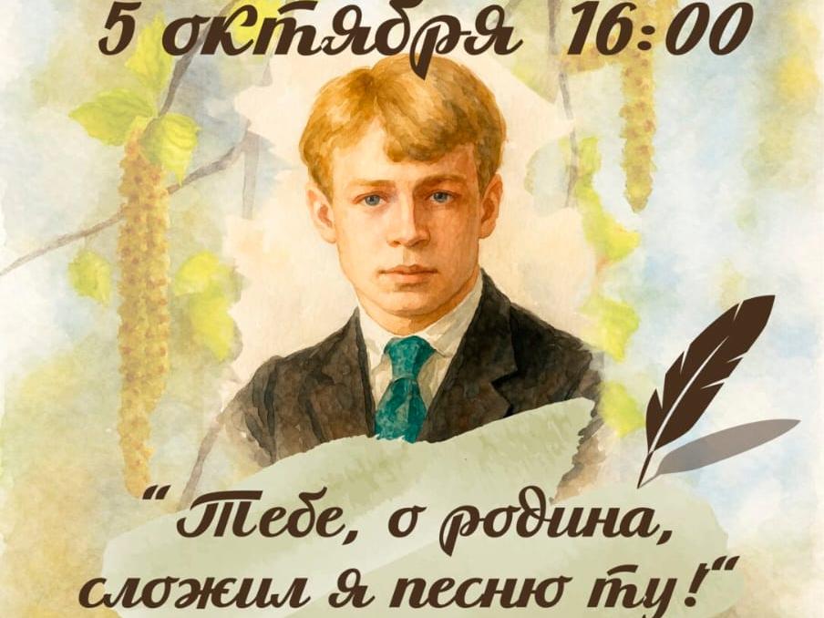 – Музыкально-поэтическая программа «Тебе, о родина, сложил я песню ту!» (6+), ДК «Приокский» – для всех желающих в 16:00 развернётся концерт, посвящённый прежде всего творческой жизни Есенина. Повесть в песнях и стихах, лирическим героем которой является сам поэт, прозвучит в исполнении артистов ДК: Народного молодежного театра «Нюанс», песенно-инструментального ансамбля «Отрада», ансамбля народной песни «Рушники» и других. Ещё раз – вход свободный.