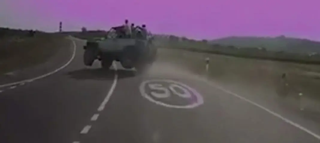 В распоряжении РЕН ТВ оказалось видео с моментом ДТП. На нем можно заметить, как шофер УАЗа потерял контроль над авто во время поворота, после этого российский внедорожник занесло, и он улетел в кювет.