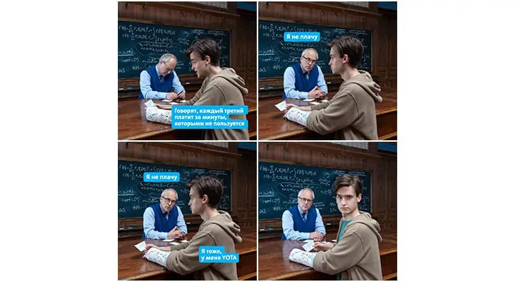 “Идею для роликов мы позаимствовали из мема, просто потому что сами любим мемы”, – комментирует бренд-менеджер Yota Елена Толбузова.
