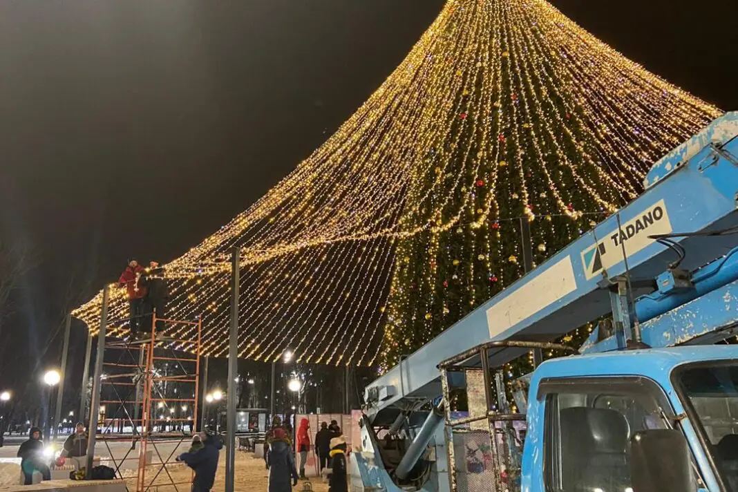 На площади Петра Великого в Липецке натянули два километра гирлянд вокруг главной ёлки. Об этом сообщает пресс-служба городской администрации.