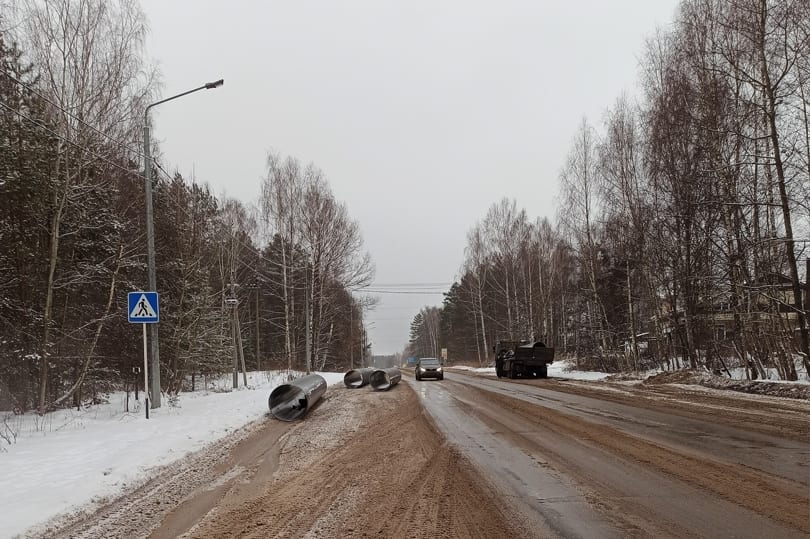 В Касимовском районе с грузовика на дорогу упали металлические трубы