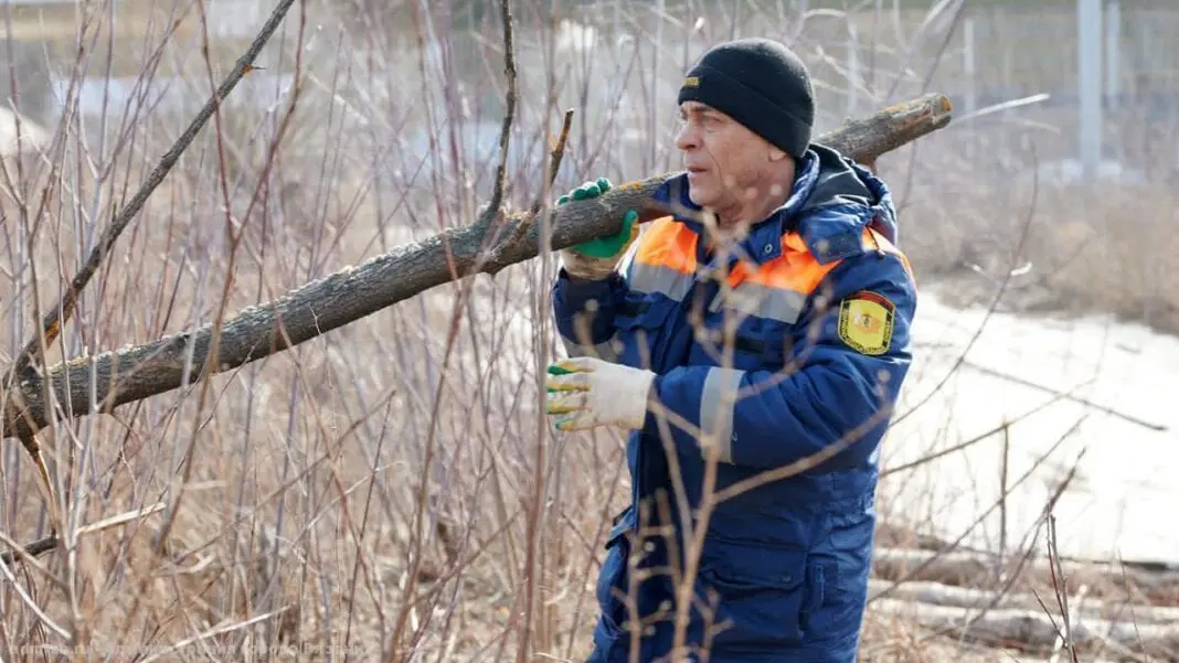 Спасатели МКУ «Управление по делам ГОЧС города Рязани» провели работы по обследованию и очистке обводных каналов реки Дунайчик от скопления предметов, затопленных стволов, порубочных остатков, затрудняющих полноценный отток талых вод.