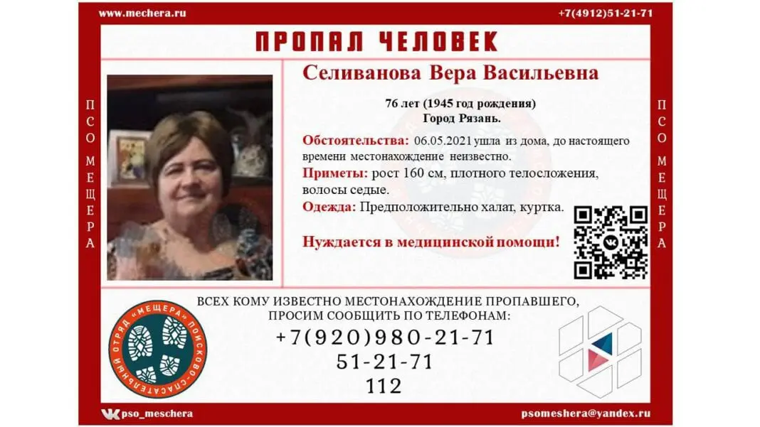 Вера Селиванова ушла из дома в четверг, но назад так и не вернулась. Волонтеры организовали поиски.