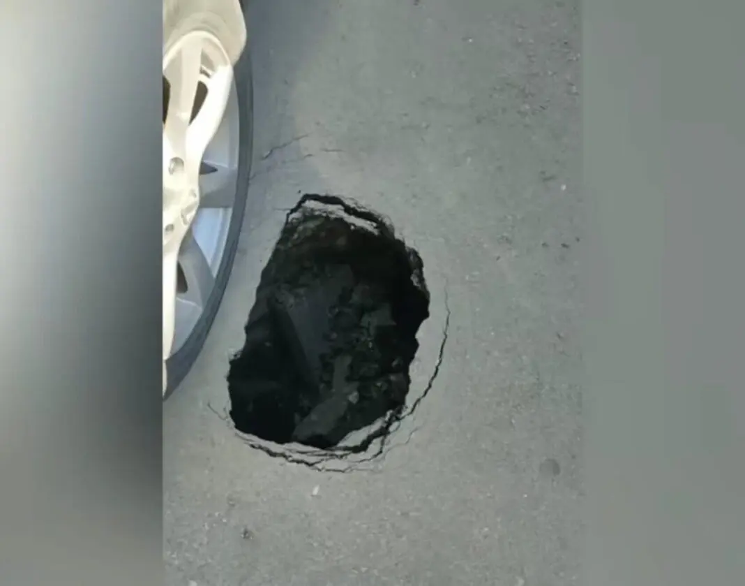 Мужчина рассказал, что его автомобиль чуть не ушел под землю из-за провала.