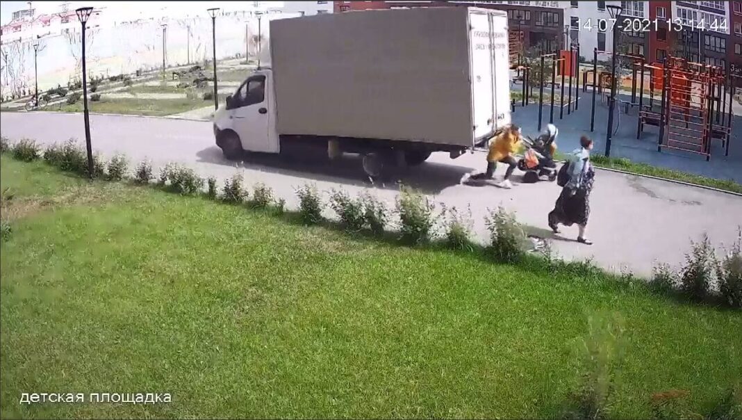 14 июля на улице Обдорской в Тюмени «Газель» наехала на мать с двумя детьми. Видео с моментом ДТП опубликовал телеграм-канал «Бушующий мир».