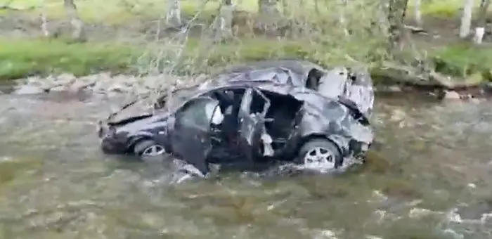 В Алтае автомобиль рухнул в реку Большой Ильгумень. Водителю удалось выжить.