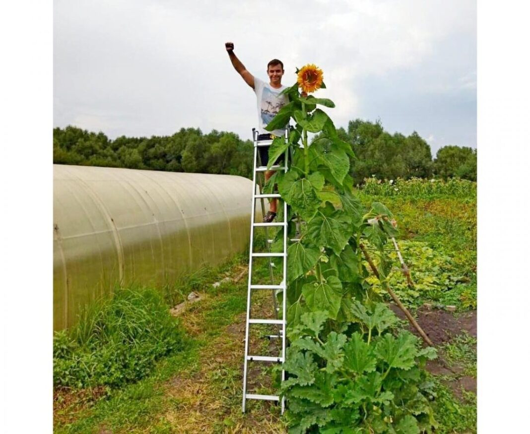 Обычно высота подсолнухов — от 60 сантиметров до 2,5 метров. Рекордсмена решили не срезать, оставить птицам.