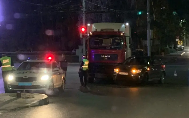 Столкнулись грузовик МАН и легковой автомобиль. На месте работали сотрудники ГИБДД.
