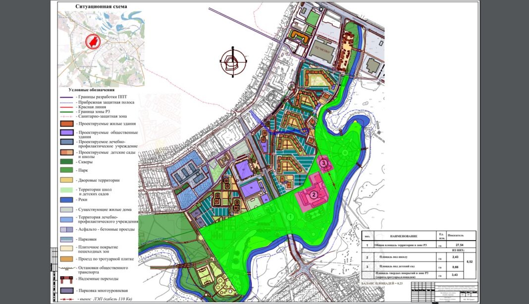 Застройщик планирует возвести на этом участке несколько многоэтажных жилых домов. Запланировано строительство школы, детского сада. На территории должны появиться парк и скверы.