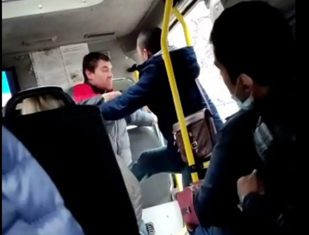 Сначала потасовка завязалась между водителем и пассажиром, затем пьяный мужчина начал драться с другим пассажиром, который пытался его успокоить. В итоге дебошира выгнали из маршрутки.
