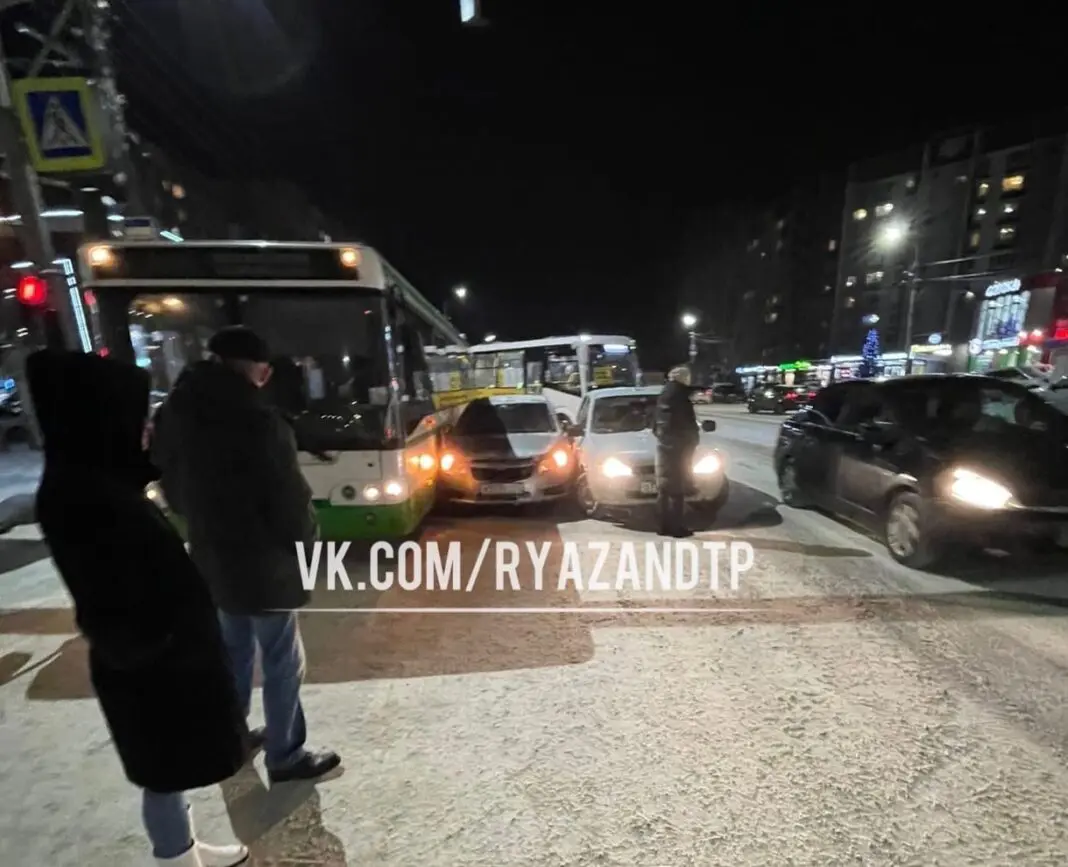 Вечером 26 декабря в микрорайоне Дашково-Песочня произошло массовое ДТП. Фото опубликовала группа «ДТП. Аварии. Рязань».