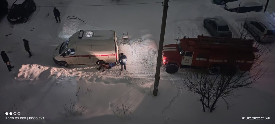 В Касимове сотрудников МЧС привлекли, чтобы вытащить застрявшую в снегу скорую помощь. Соответствующий пост опубликовала группа «Типичный Касимов».