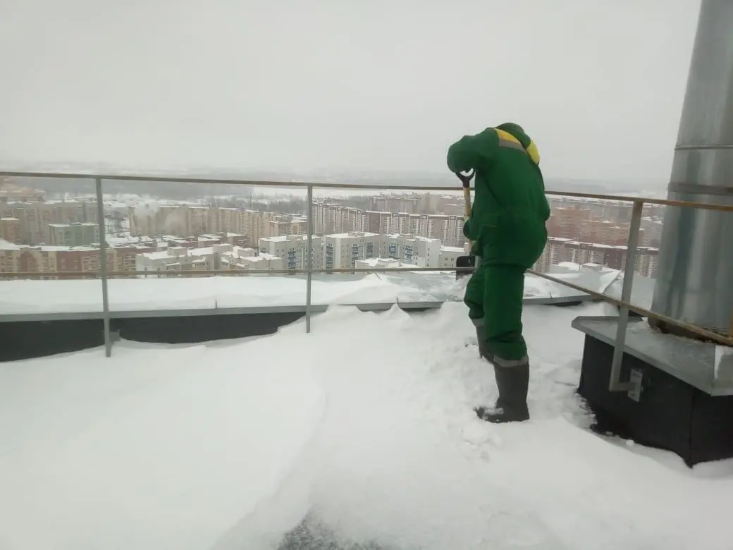 Специалисты убрали снег на крышах, почистили снежные наносы и наледи на оконных отливах, блоках кондиционеров, парапетах и инженерных системах.