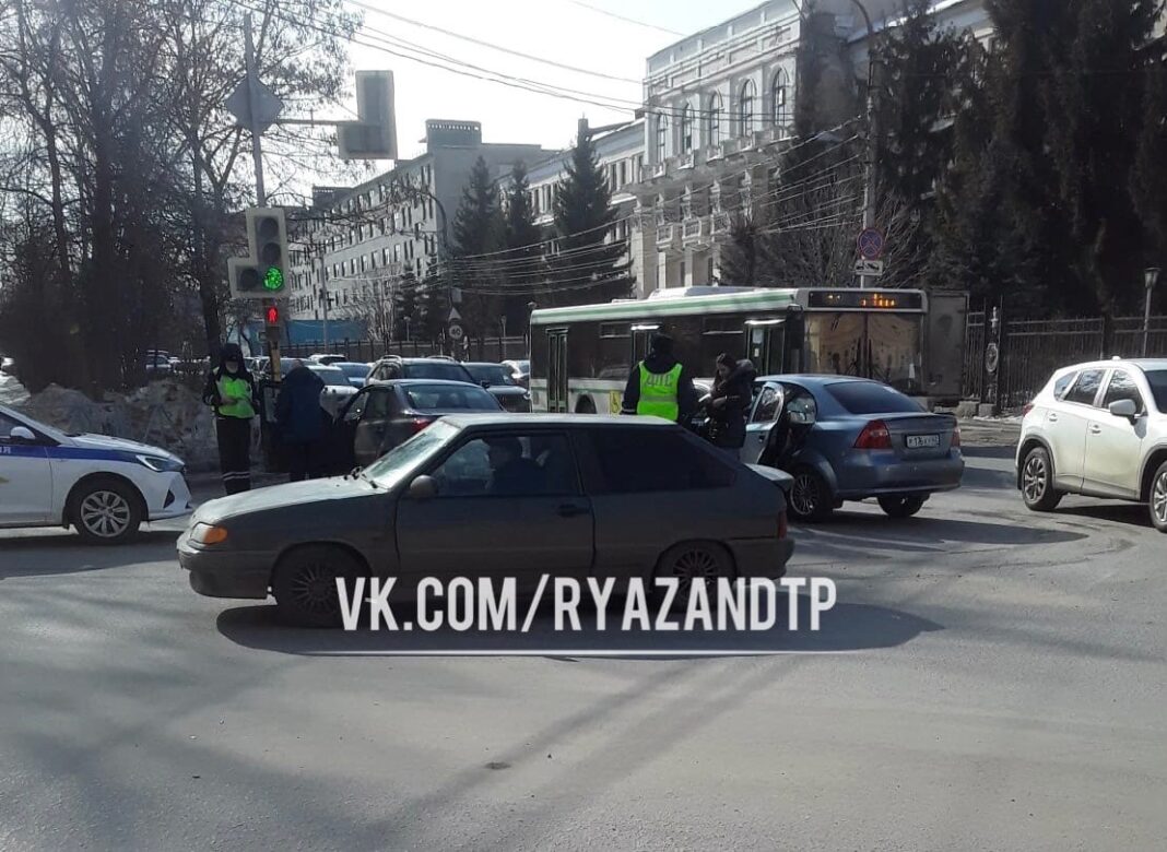 Днём 9 марта на перекрёстке улиц Каширина — Семинарской произошло ДТП. Пост опубликовала группа «ДТП. Аварии. Рязань».