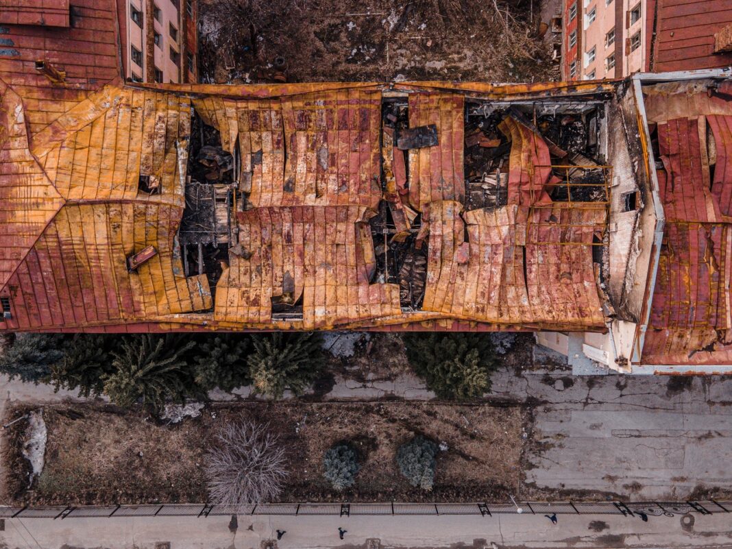 Последствия пожара в бывшем училище связи в Рязани показали с высоты