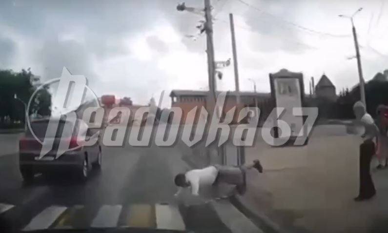 Однако на опубликованных кадрах видно, как местный житель буквально падает под колеса автомобиля. По словам очевидцев, мужчина мог находится в состоянии алкогольного опьянения, что и стало причиной случившегося.
