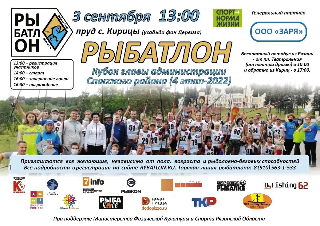 В первую субботу сентября с 13 часов возле усадьбы барона фон Дервиза в 50 километрах от Рязани пройдёт традиционный Кубок главы администрации Спасского района по поплавочному рыбатлону.