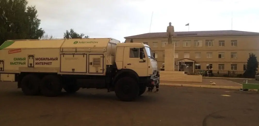 Специальная машина повышенной проходимости на шасси КамАЗа обеспечивает покрытие связью около 30 километров на открытой местности и 5-6 километров в лесу.