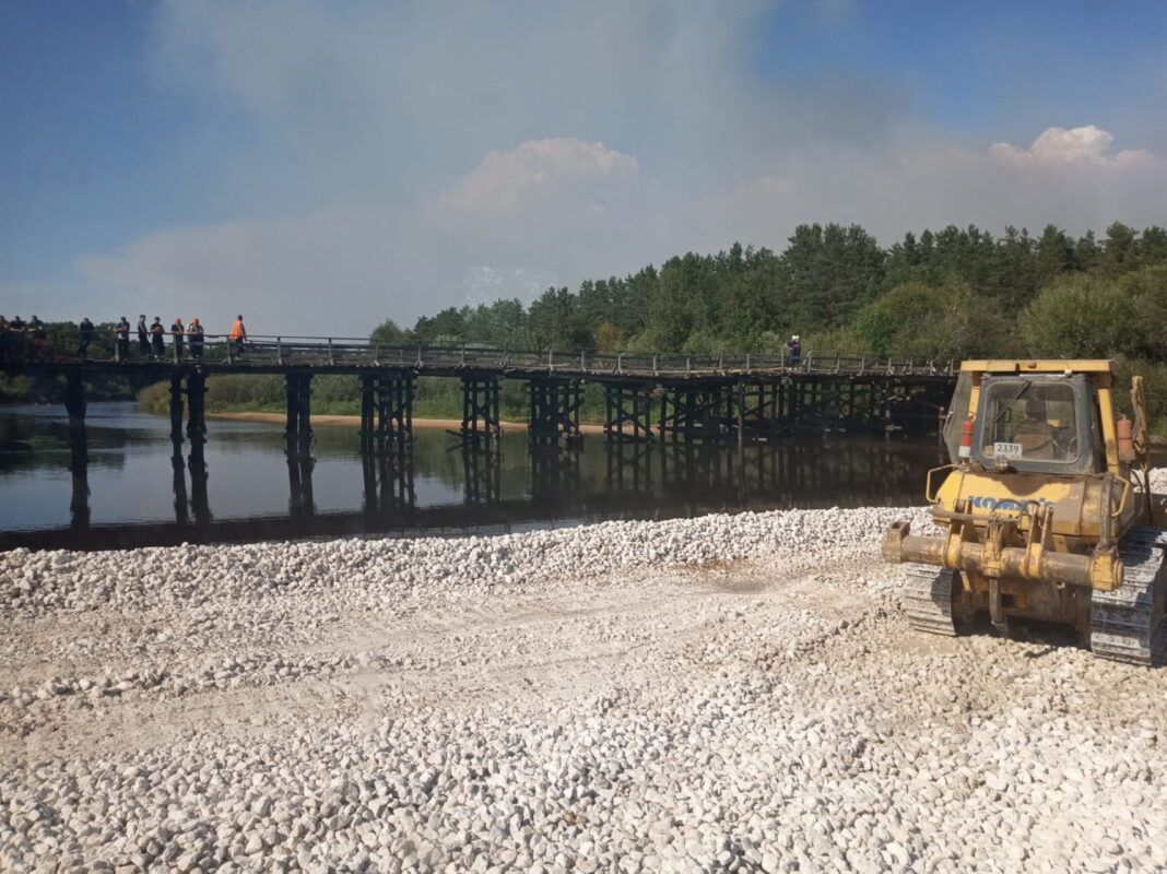 Переправа понадобилась для переброски тяжёлой техники – бульдозеров и пожарных расчётов – в районы лесных пожаров. Местные жители пользовались старым деревянным мостом, который не подходит для переправы техники.