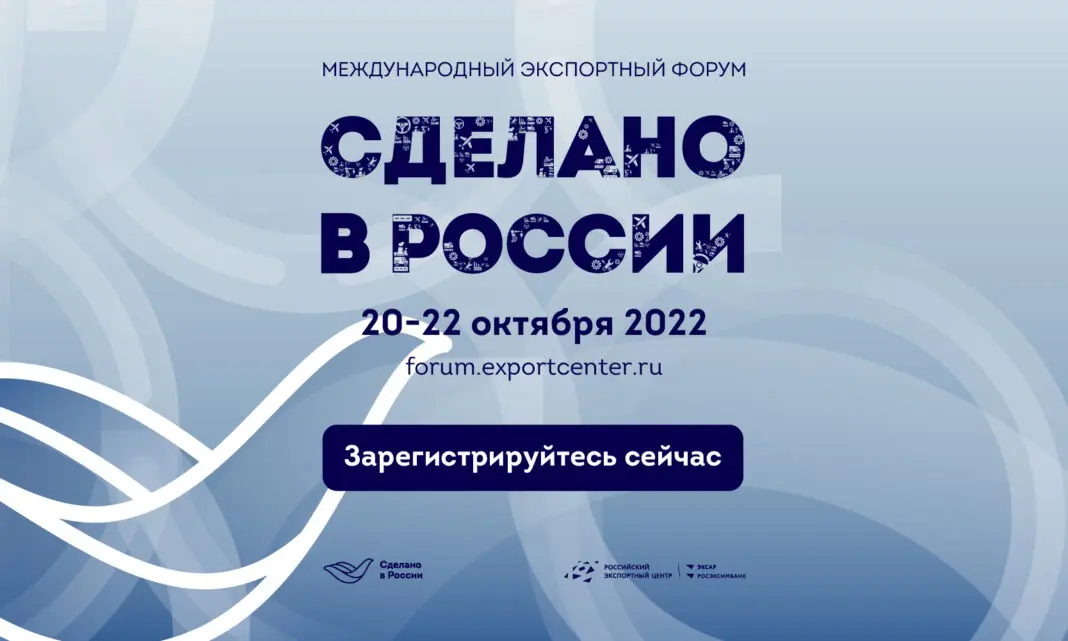 20-22 октября 2022 года в Москве, в ЦВЗ «Манеж», состоится Международный экспортный форум «Сделано в России», организованный Российским экспортным центром.