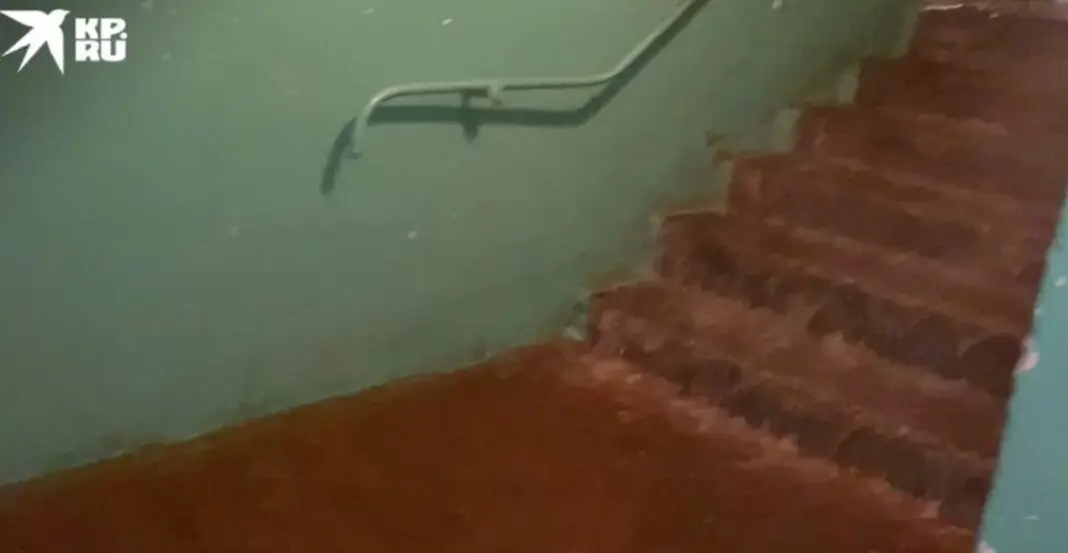 В подъезде дома №7 по улице Вокзальной на первом этаже лопнула труба с горячей водой. За считанные минуты потоки кипятка залили всю площадку, перекрыв людям доступ в подъезд.