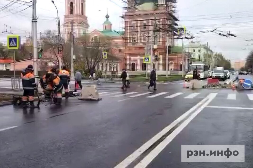 Рабочие сняли новый асфальт на улице Циолковского для выравнивания высоты крышек колодцев по отношению к покрытию проезжей части, сообщила пресс-служба администрации Рязани.