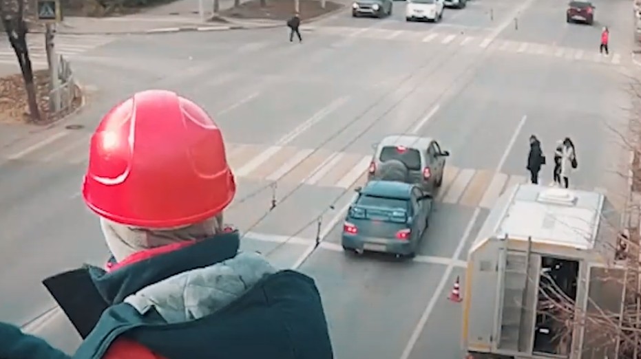 Авария получилась несильной — машины получили небольшие механические повреждения. Примечательно, что в момент ДТП перед камерой на вышке находились рабочие. Двое мужчин наблюдали момент столкновения.