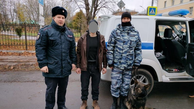 Экипаж отдельного батальона ППСП УМВД по Рязанской области, усиленный кинологом со служебной собакой, в дневное время на улице Скоморошинской обратил внимание на прохожего, который вышел из кустов и оглядывался по сторонам. Правоохранители решили проверить у подозрительного гражданина документы. При виде сотрудников полиции злоумышленник попытался сбежать, однако его остановили.