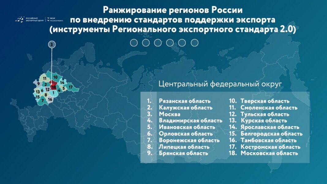 Рязанская область оказалась на верхних строчках рейтинга по внедрению стандартов поддержки экспорта