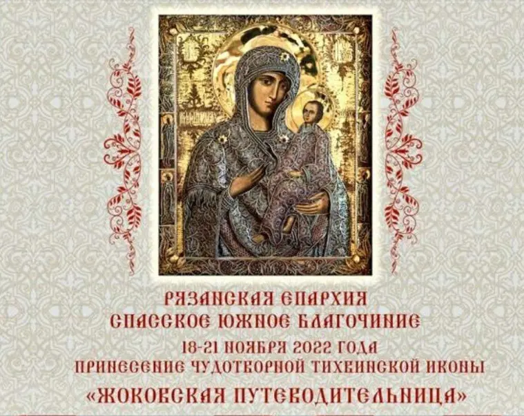 18 ноября в 15:45 в Вознесенском храме г. Спасска планируется принесение чудотворной Тихвинской иконы Божией Матери «Жоковская Путеводительница». Об этом сообщает официальная группа Спасского района Рязанской области ВКонтакте.