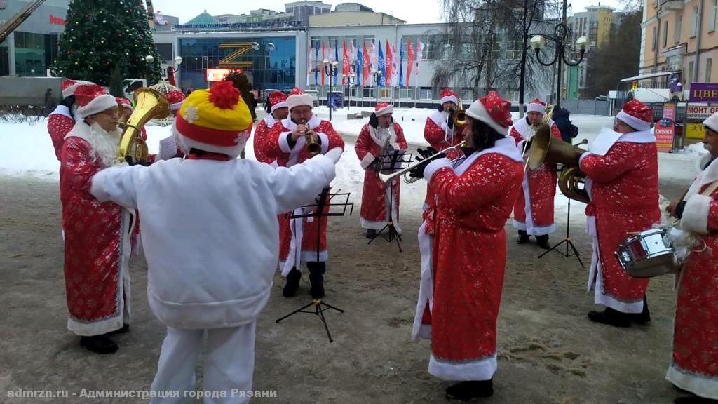 Стартовал проект от остановки «Цирк». В автобусе по улицам города вместе со сказочными персонажами ездит оркестр Дедов Морозов. На остановках общественного транспорта они исполнят новогодние мелодии для горожан.