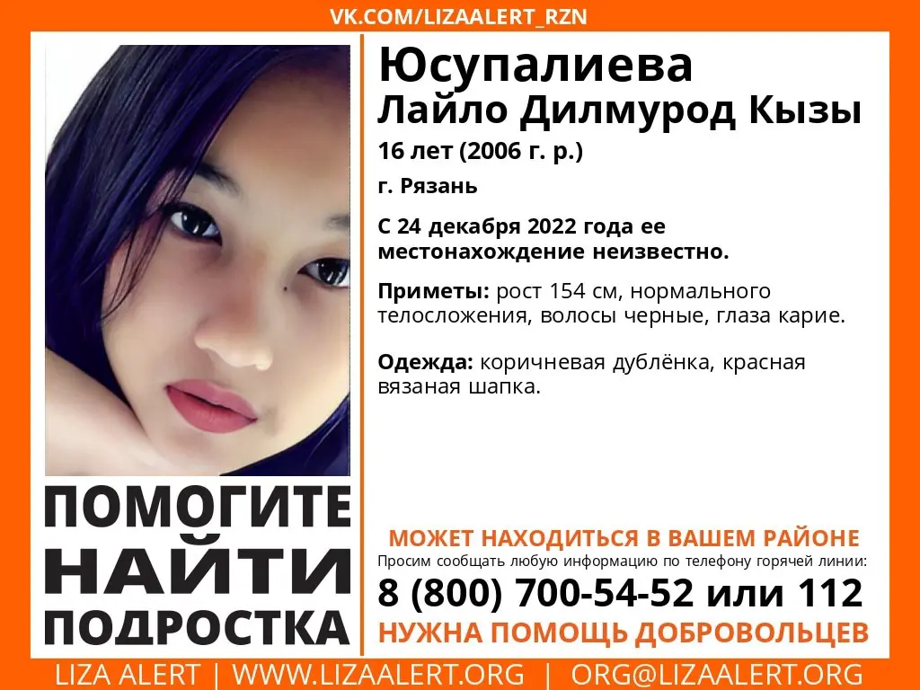 В Рязани пропала 16-летняя Лайло Дилмурод Кызы. Об этом сообщили волонтёры ПСО «Лиза Алерт».