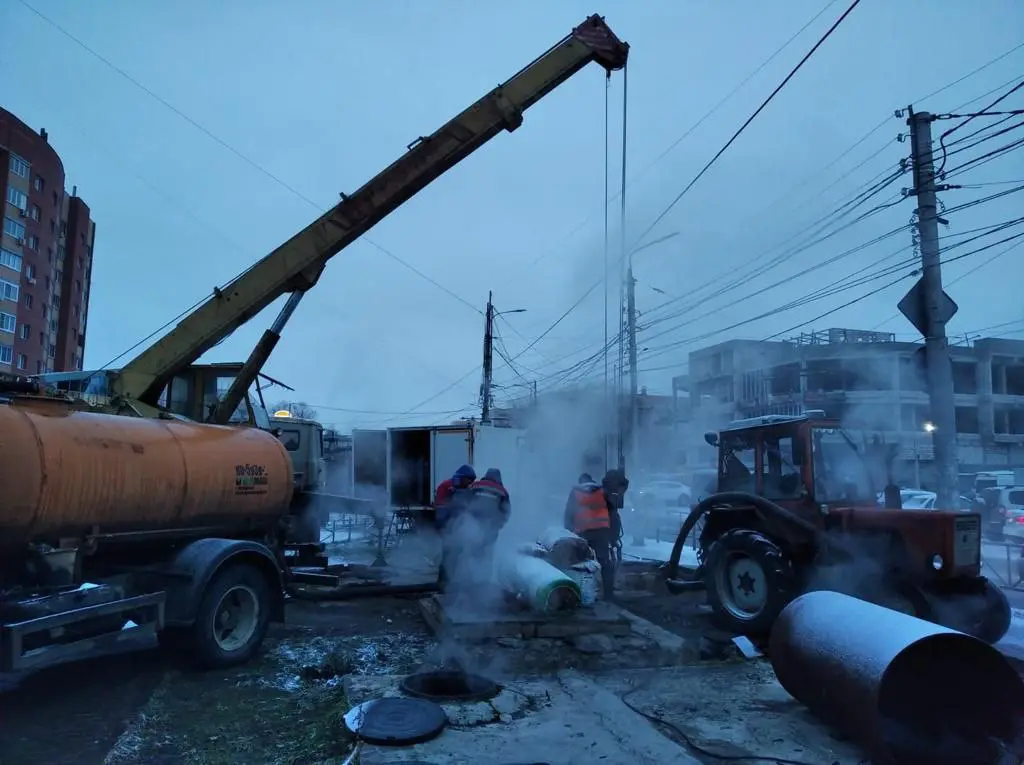 Сотрудники МУП «РМПТС» вырезали повреждённый участок трубы у больницы № 11, сейчас подгоняется новый, после чего начнутся сварные работы.
