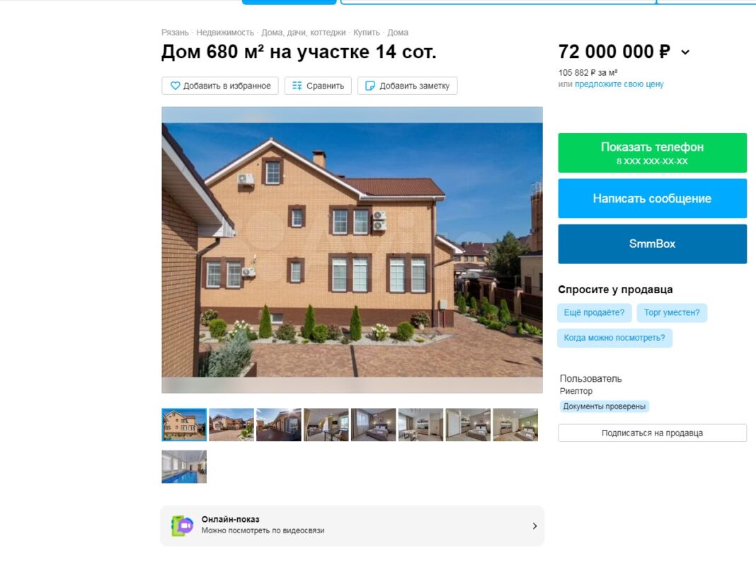 В Рязани за 72 миллиона рублей продают дом в Солотче. Объявление опубликовано на сайте Авито.