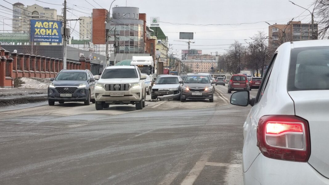Днём 18 января в центре Рязани образовалась огромная пробка из-за ДТП на Московском шоссе. Снимки с места аварии опубликовала группа «Дороги Рязани».