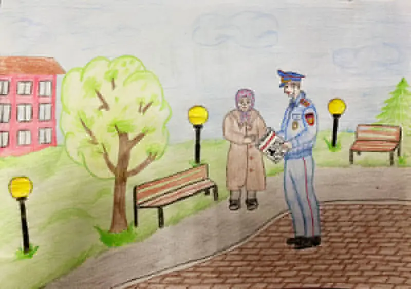 «Золото» среди самых юных участников заслужено досталось 8-летней Полине Рахманиной. Девочка нарисовала участкового в момент профилактической работы с населением.
