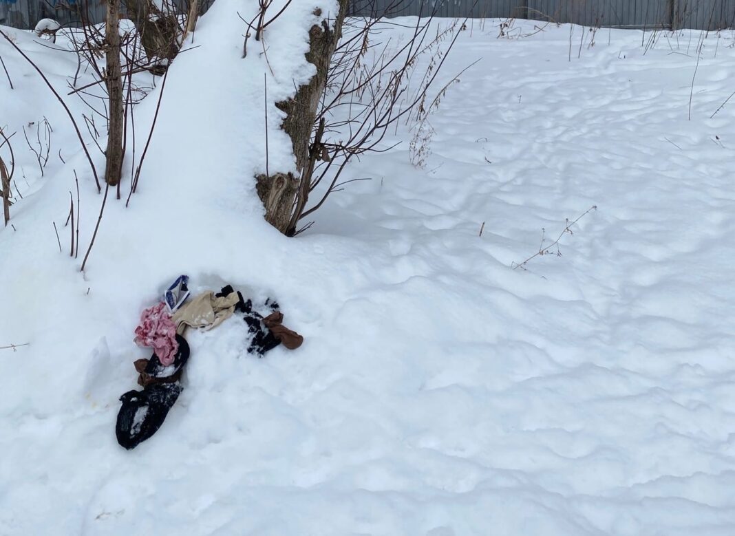 — я подумала, что он подкармливает собак и кошек рыбой или мясом…до того как я обернулась, он тряся пакетом, в спешке закапывал предметы женского белья в снег, — пишет автор поста.