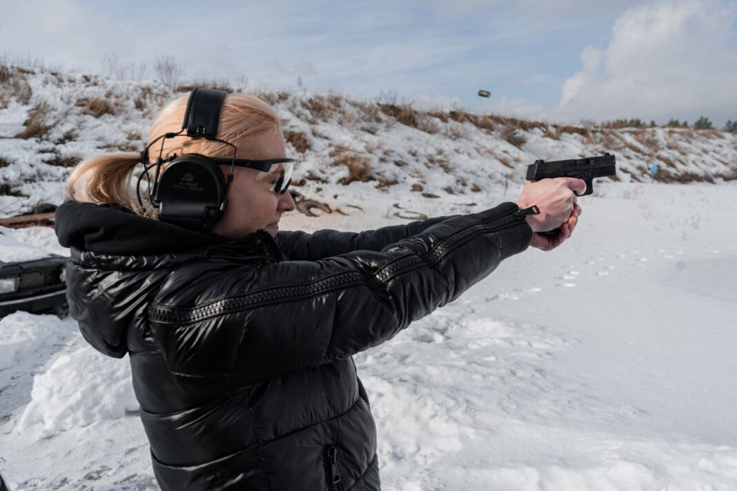 Первый зампред правительства Рязанской области Анна Рослякова поупражнялась в стрельбе на занятии в тире огнестрельного оружия под открытым небом.