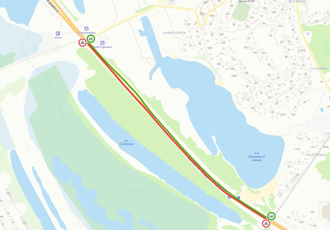 Работы по реконструкции дороги в рамках проекта «Безопасные и качественные дороги» пройдут от поворота на 5-й район Борок до путепровода у 2-го Борковского карьера.