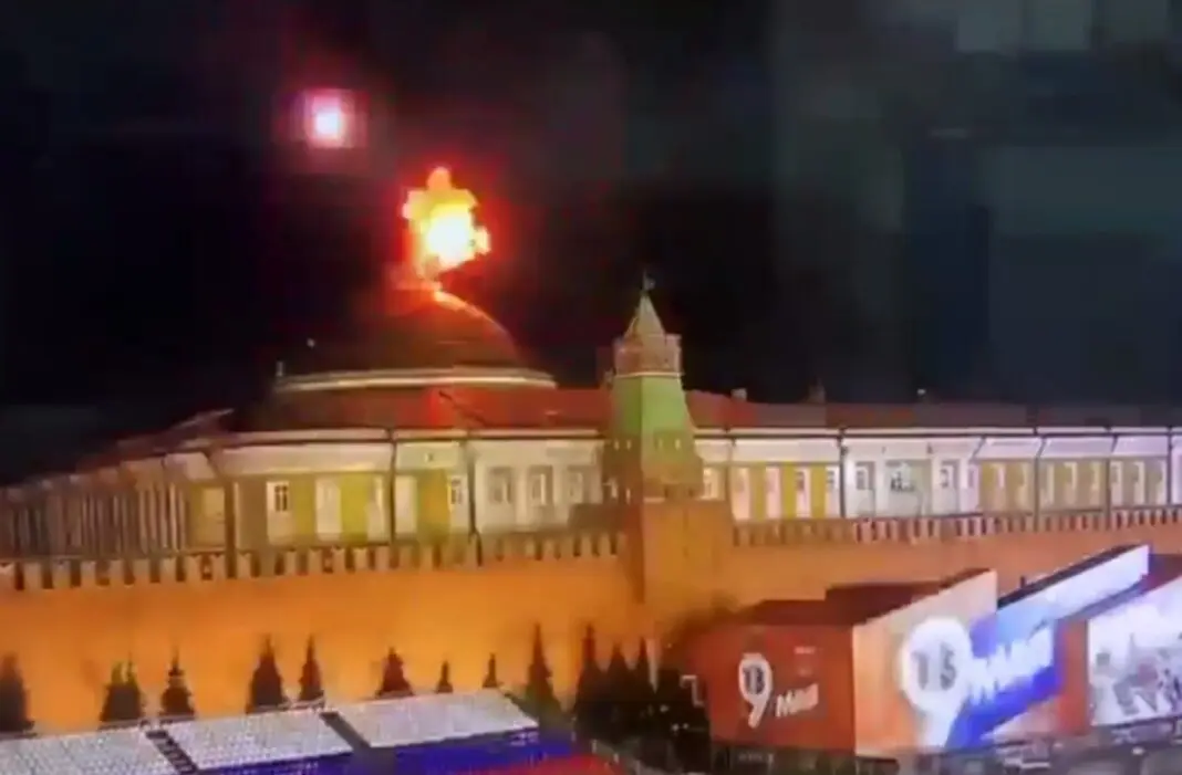 В интернете появилось видео с моментом ночной атаки беспилотников на Кремль в Москве.