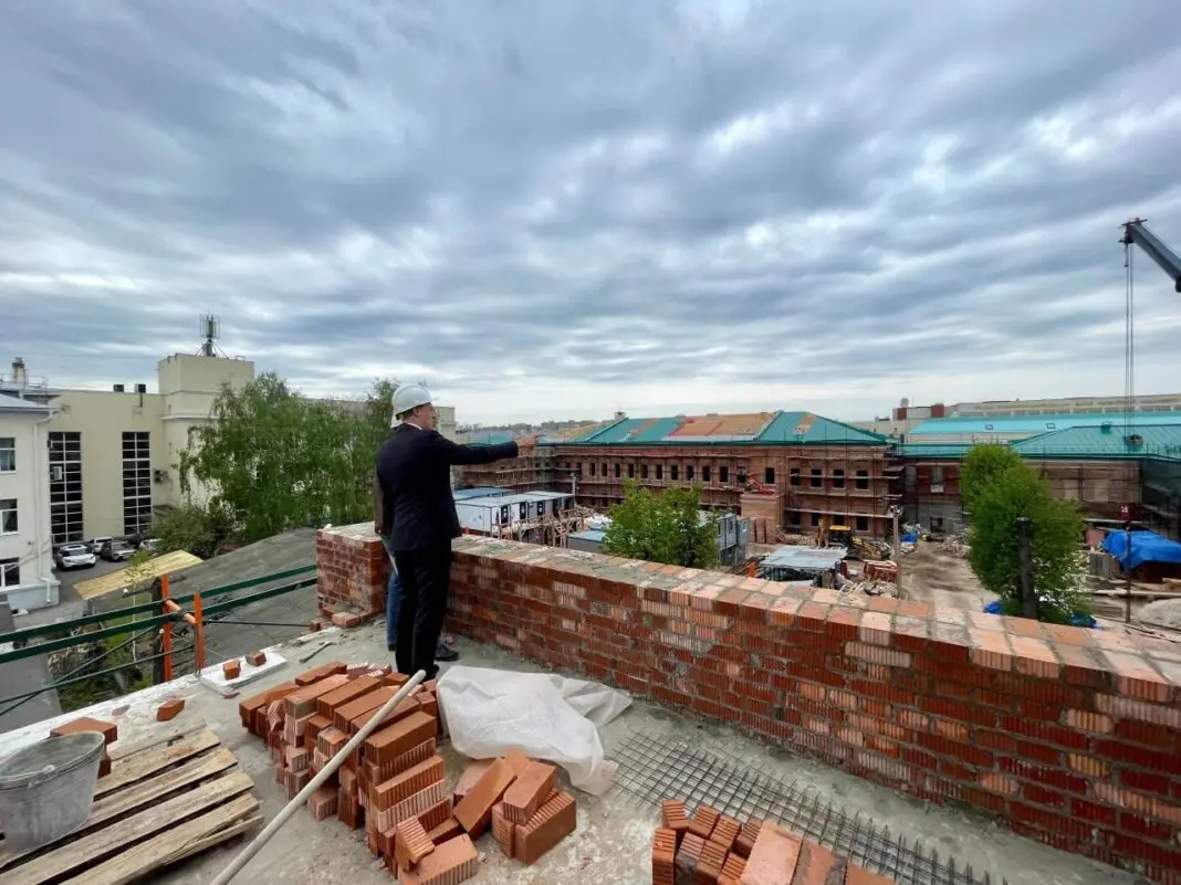 Сейчас на объекте задействованы 240 человек, трудятся в три смены. Восстановлены разрушенные участки стен — заменено около 150 тысяч кирпичей. Завершается ремонт кровли, меняются окна, ведутся работы в спортивном зале. До конца июня все капитальные работы завершатся. Сразу после этого подрядчик приступит к внутренней отделке помещений.
