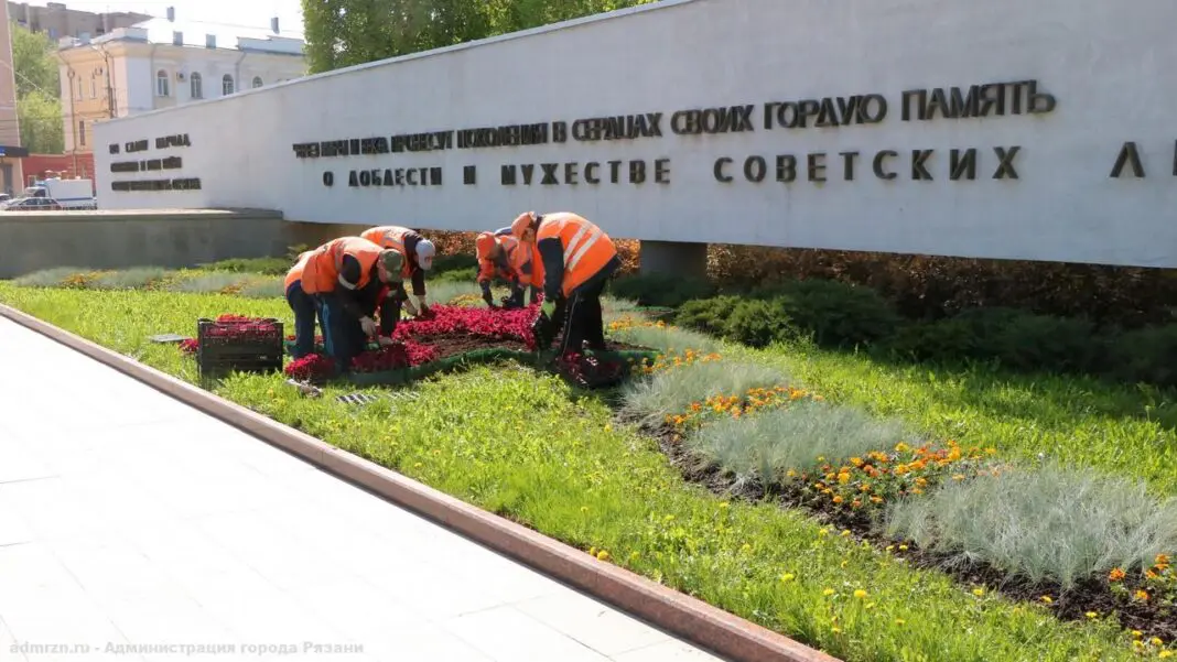 Рязань продолжает подготовку ко Дню Победы. На клумбы возле памятников начали высаживать цветы.