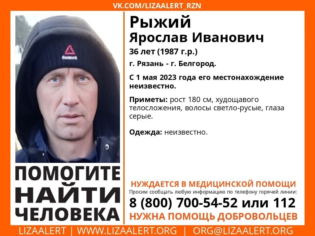 В Рязани пропал 36-летний Ярослав Рыжий, об этом проинформировал ПСО «Лиза Алерт».
