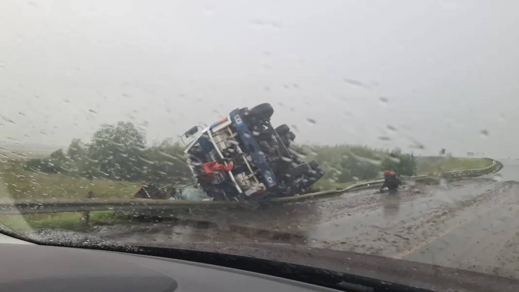 Авария произошла у деревни Поярково Михайловского района. По словам автора поста, грузовой автомобиль перевернулся в дождь.