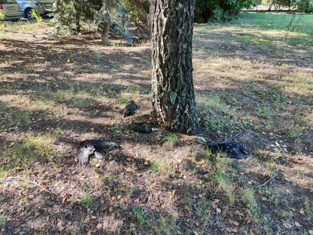 По её словам, пространство около остановки ЖБИ-2, а также сквер около завода завалены трупами ворон.