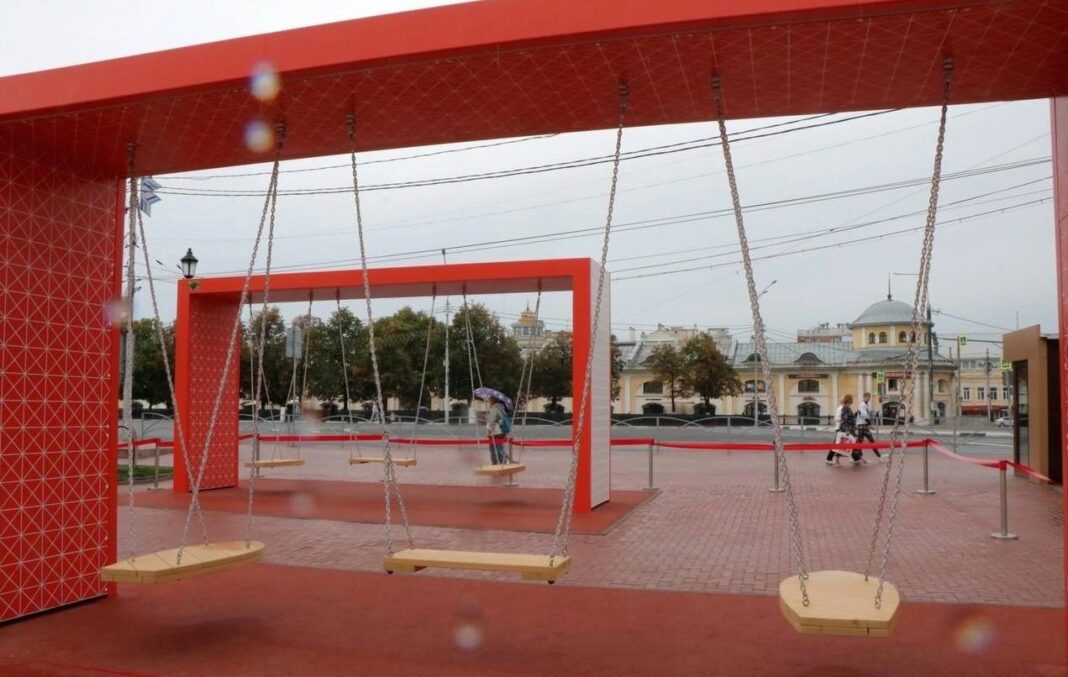 В сквере у Торговых рядов в Рязани появились панорамные качели, сообщает сайт администрации города.