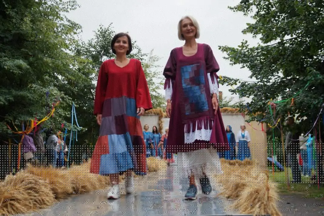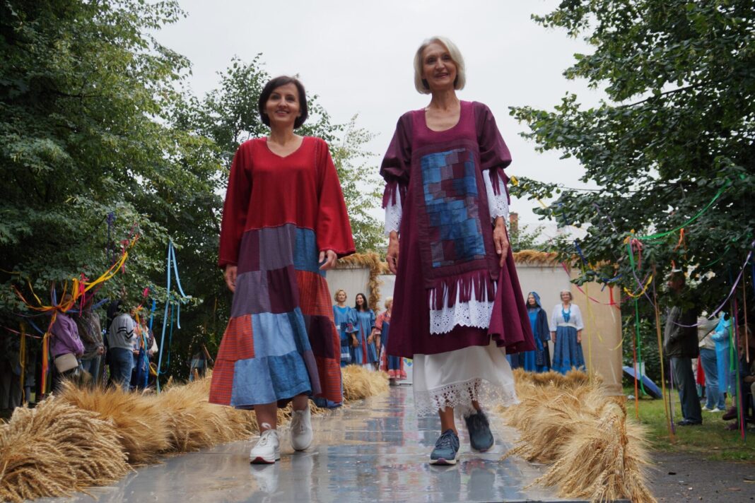 Во время показов модели демонстрировали одежду, которая вполне вписывается в современный городской стиль, но при этом смотрится оригинально и аутентично. Тут были и разнообразные платья, и брючные костюмы, и многослойные комплекты. Изделия представляли как опытные мастерицы, так и только начинающие.