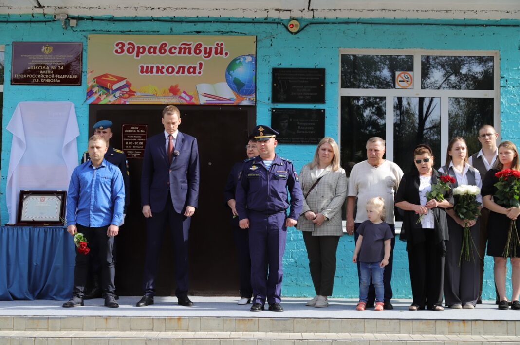 Павел Малков принял участие в открытии мемориальной доски Павлу Кривову, установленной на здании рязанской школы №34.
